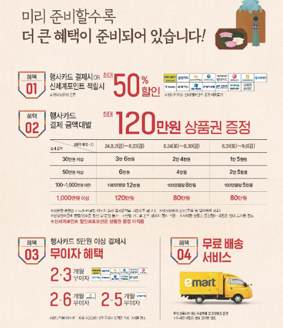 각 마트에서 제공하는 혜택을 잘 활용하여 알찬 추석 준비를 해보세요.