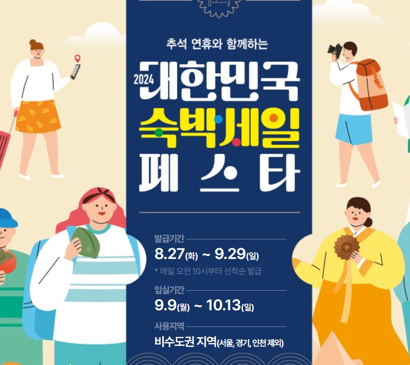 2024년 추석 연휴를 맞아 대한민국 숙박세일 페스타가 돌아왔습니다. 이 행사는 전국의 비수도권 지역에서 숙박 할인 혜택을 받을 수 있는 절호의 기회입니다.