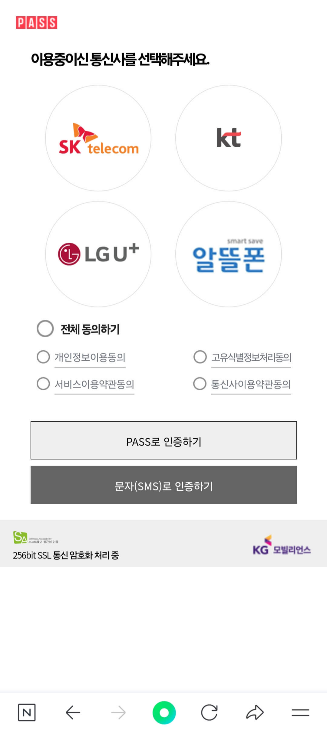 3) 거주지역을 입력하고, 본인인증을 진행합니다.