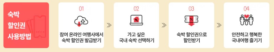 - 참여 방법: 참여 여행사 사이트(https://ktostay.visitkorea.or.kr/)에서 숙박 할인권을 발급받아 사용할 수 있습니다.