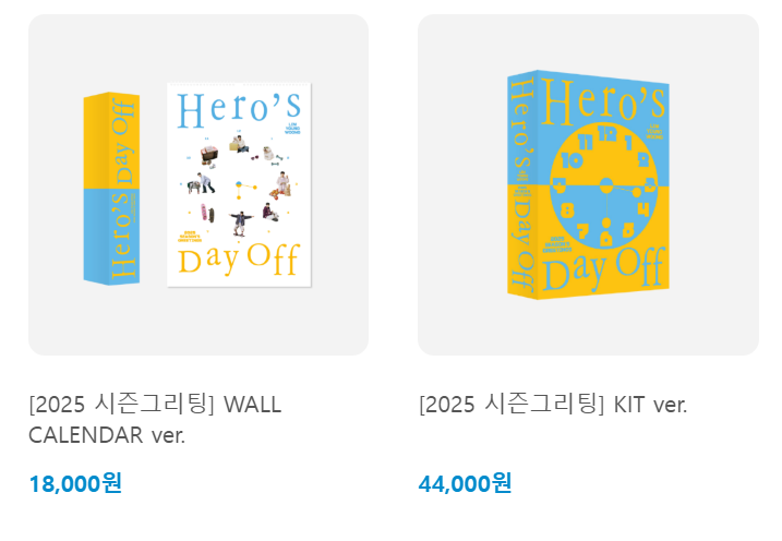 2025 시즌 그리팅 키트는 "Hero's DayOff"라는 테마로 구성되어 있습니다.