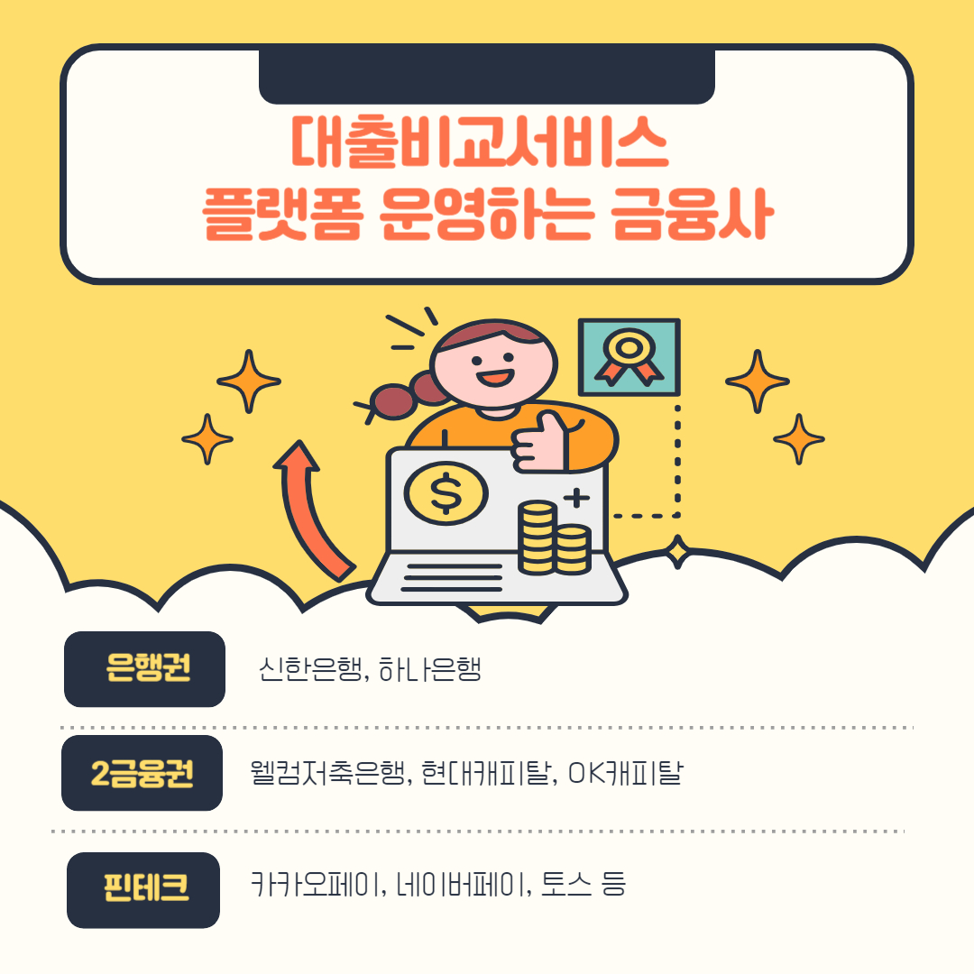 현재 대출 비교 서비스는 시중은행을 제외한 네이버, 카카오 같은 핀테크 기업이 시장을 장악하고 있는데