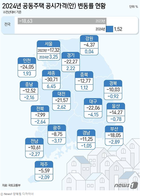 2. 세종 공시가 6.45%↑, 올해 1위…수도권 외에는 대부분 하락[2024 공시가격]
