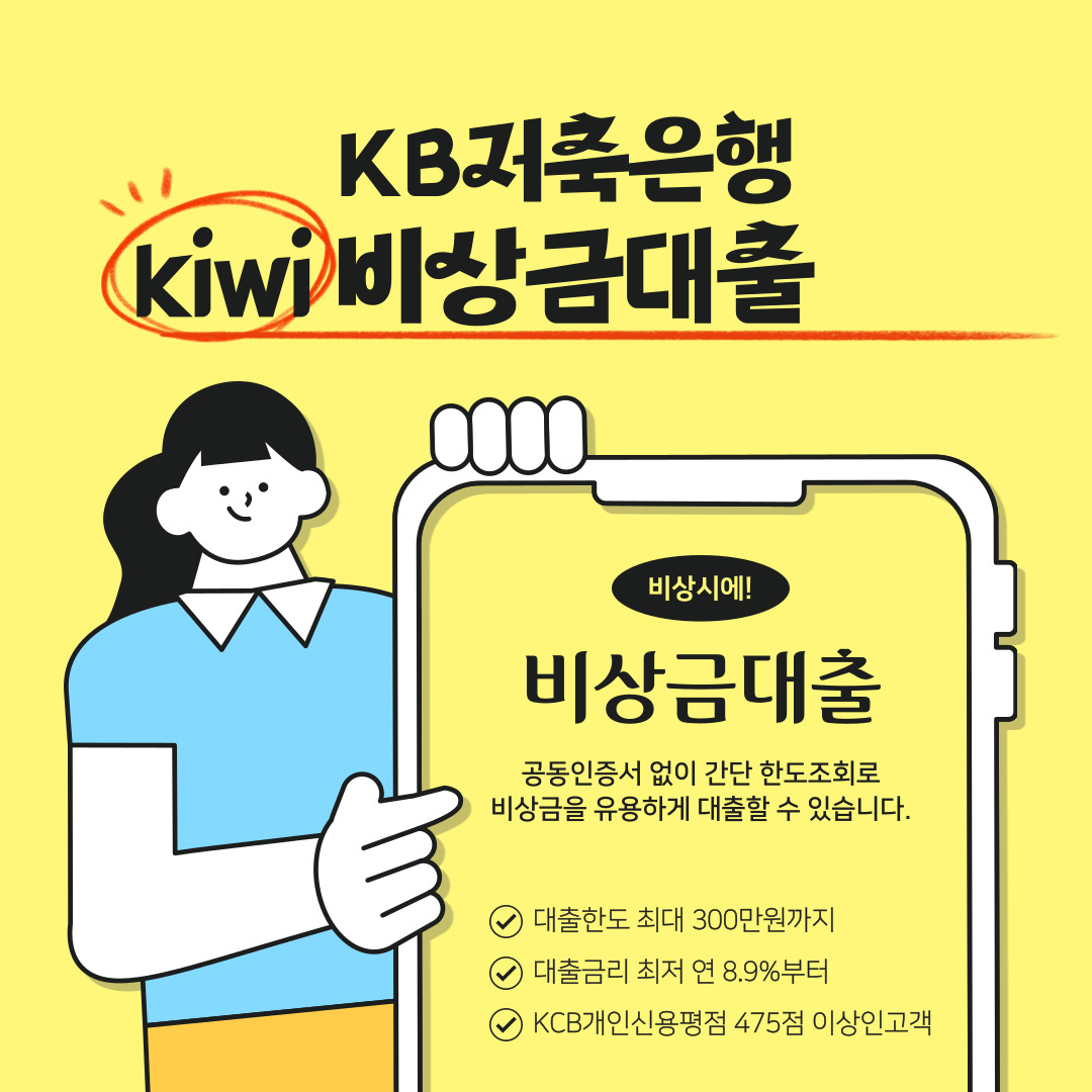 바로 KB저축은행의 kiwi비상금대출입니다.