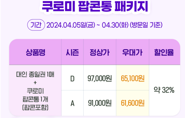 - 대인 1매 + 쿠로미 팝콘통