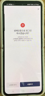 6. 생체 인증(지문등록)으로 로그인 하려면 사용하기 누르시면 됩니다.