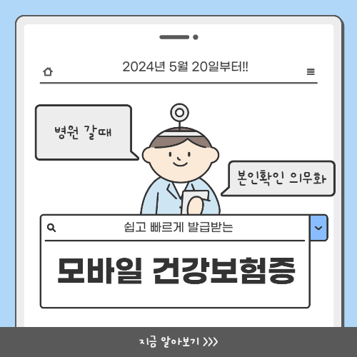 보건복지부는 24년 5월 20일부터 건강보험 본인확인 의무화 제도가 시행된다고 밝혔습니다.