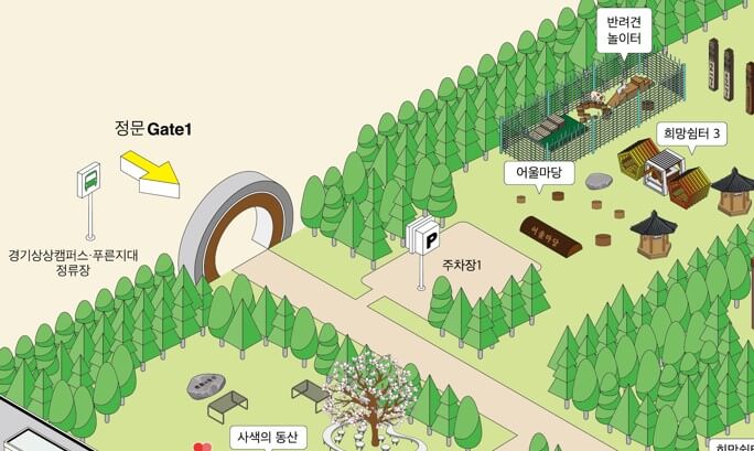- 경기도 업사이클 플라자, 희망쉼터1, 바닥분수 등과 가까움