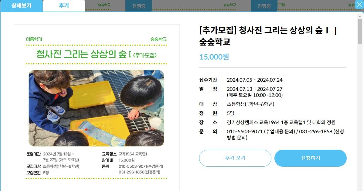 2) 청사진 그리는 상상의 숲, 숲숲학교 (초등학생 1~6학년)
