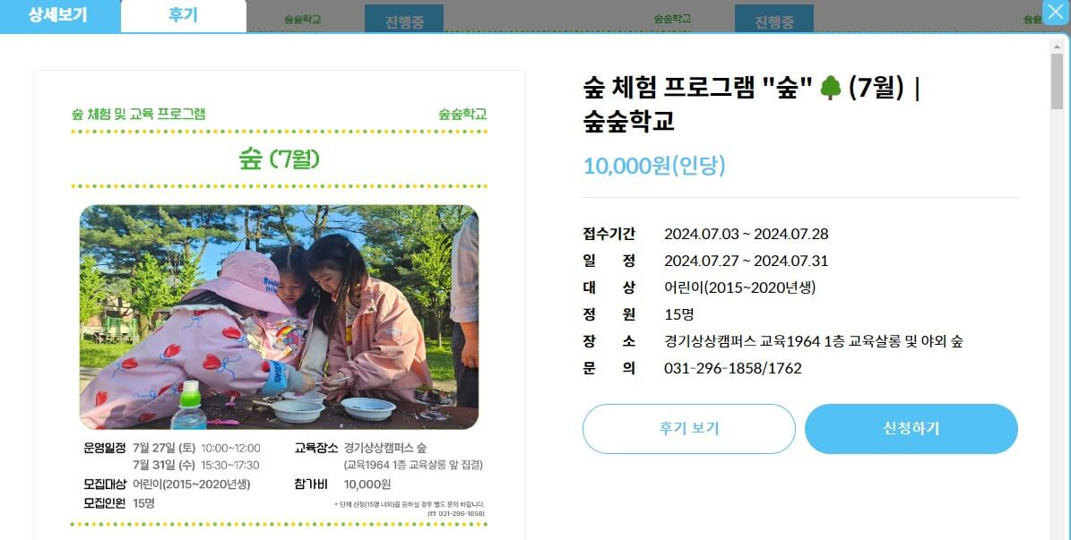 3) 숲 체험 프로그램, 숲숲학교 (어린이 2015~2020년생)