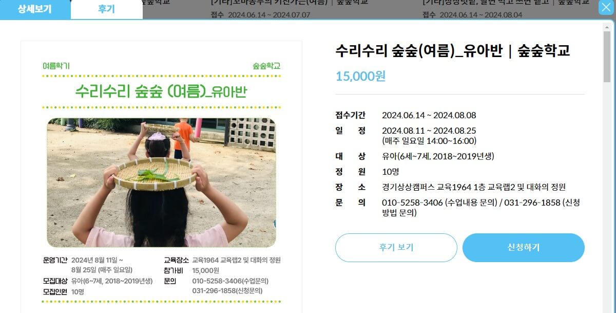 4) 수리수리 숲숲 (유아), 숲숲학교 (유아 6~7세, 2018~19년생)
