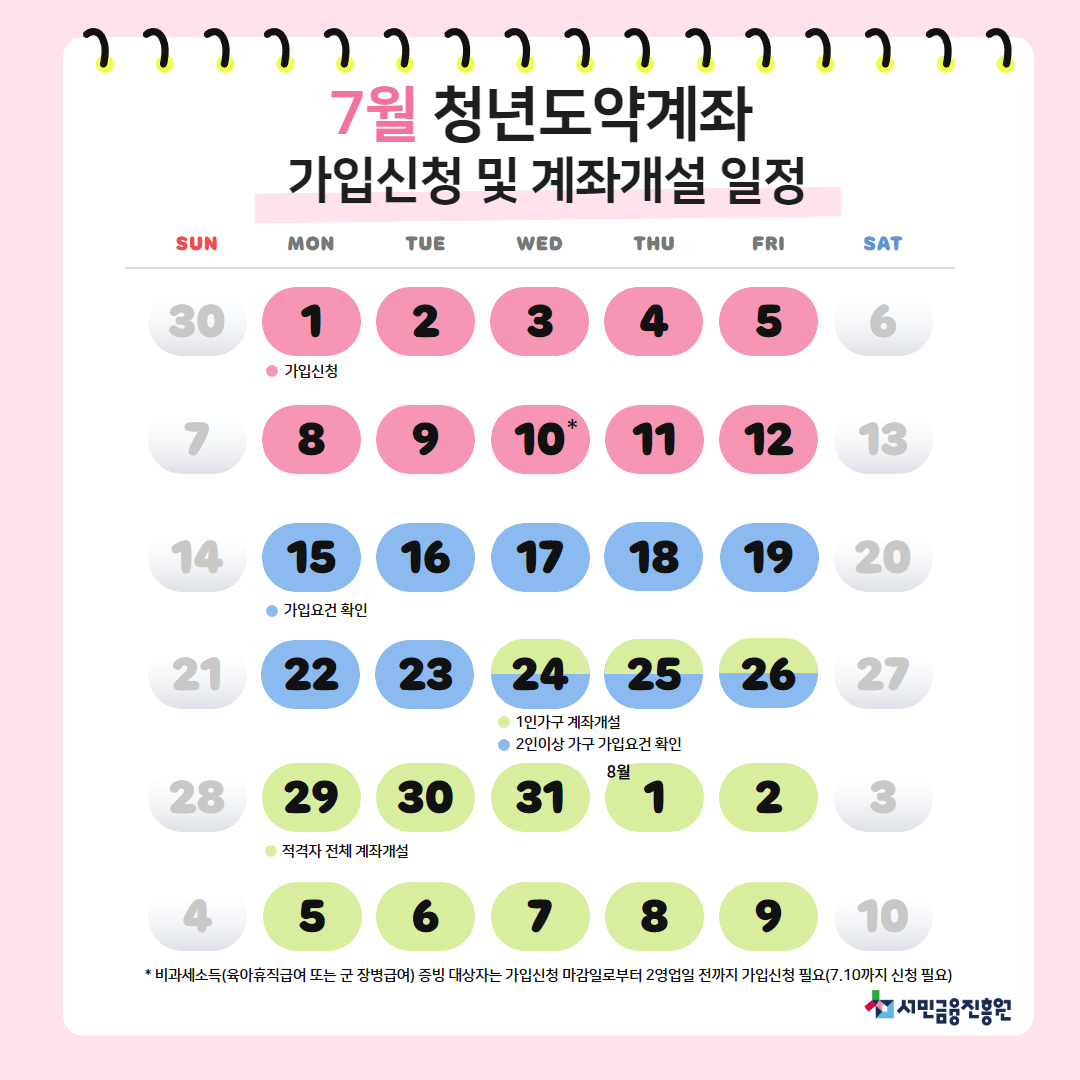 [계좌 가입신청 및 개설 7월 운영일정]