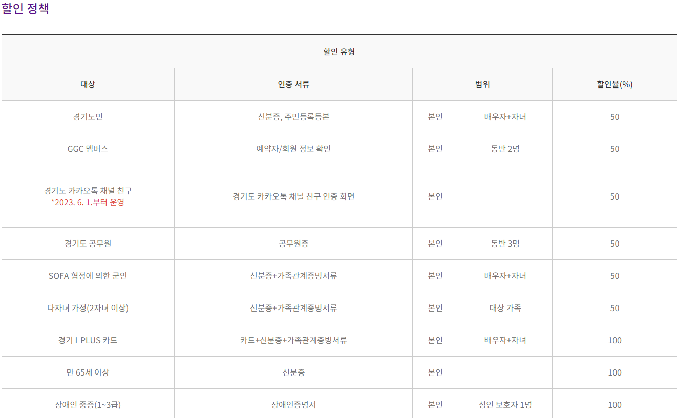 - 단체 : 2,000원 (10인이상 단체 예약 가능, 단체 요금은 20인 이상 적용)