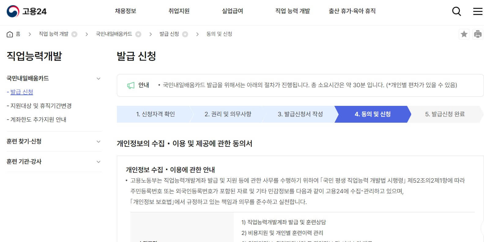 훈련과정 수강신청: 고용 센터 방문 또는 고용 24를 통해 신청 가능합니다.