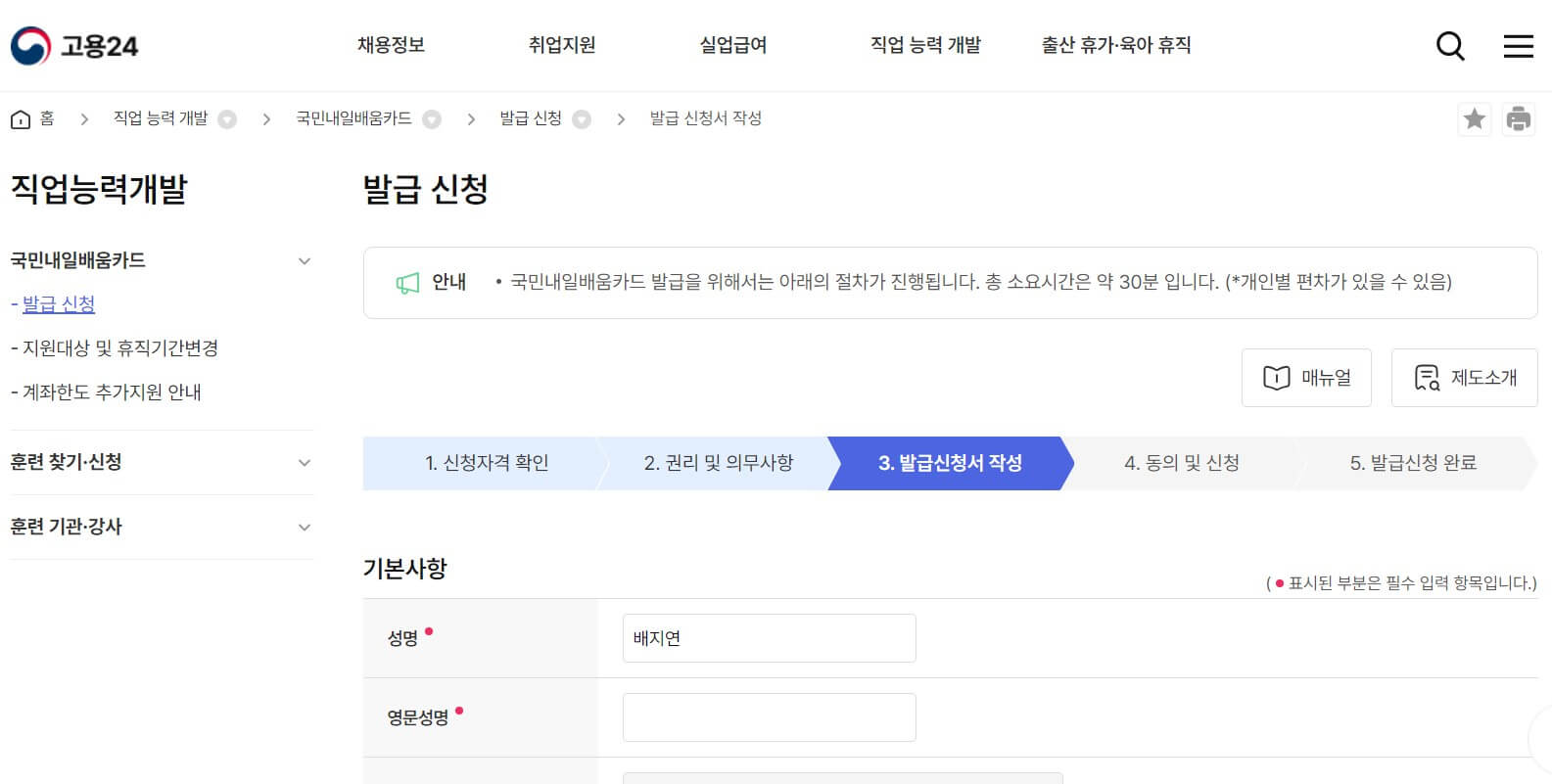 3. 발급 신청서 작성하기