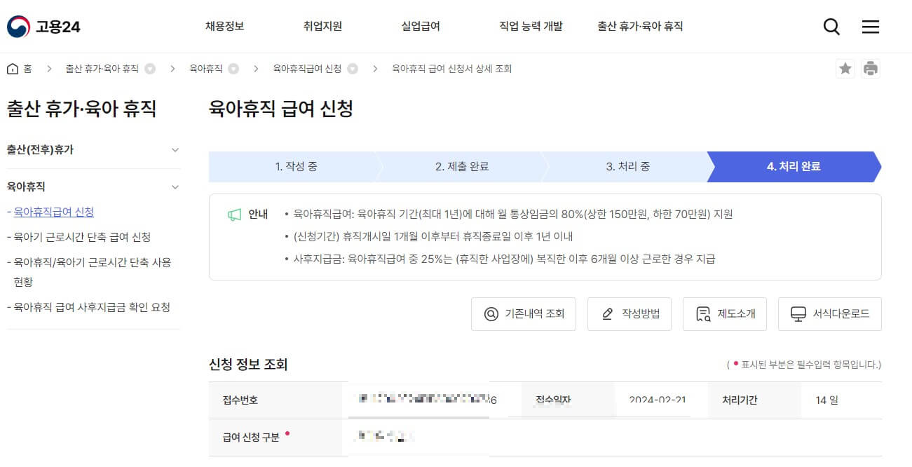 3-1) 고용 24의 출산휴가/육아 휴직 최초 신청서로 접속 후